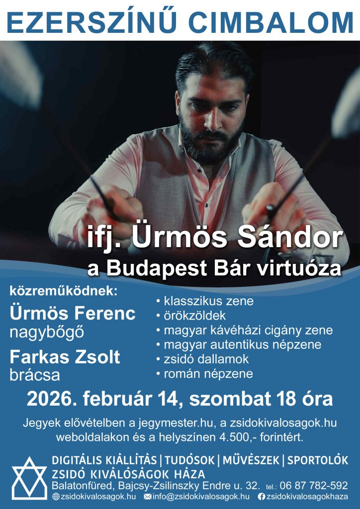 Ifj. Ürmös Sándor egy sok-generációs cimbalmos család legfiatalabb zenésze, a Budapest Bár formáció állandó tagja. Fergeteges virtuozitással játszik komolyzenét, kávéházi cigányzenét, hagyományos népzenét, örökzöldeket, zsidó dallamokat és akár román népzenét is. Szólóestjén a Zsidó Kiválóságok Házában családi zenészbarátai kísérik nagybőgőn és brácsán.
